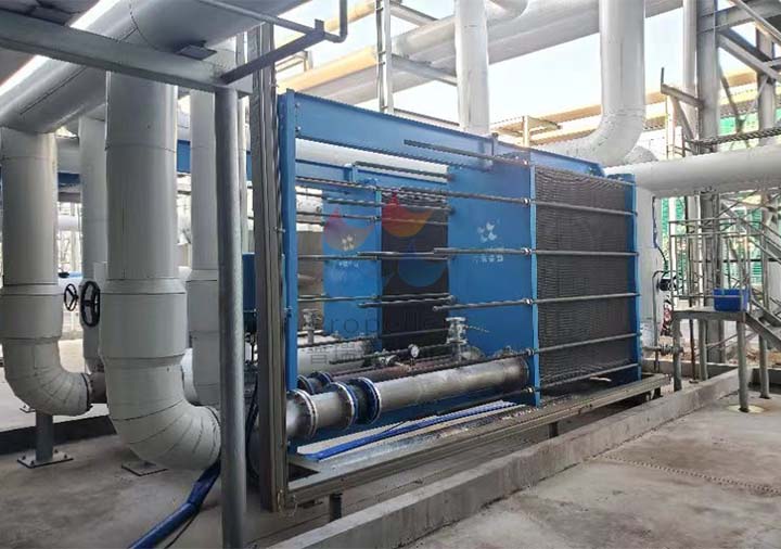 糖廠廢蜜粘度較高,流動性差,因此廢蜜冷卻器采用普瑞普勒(北京)公司可拆式寬流道板式換熱器,以更好的通過性、傳熱性能、承壓性能,保證廢蜜的流動性和通過性,用冷卻水將廢糖蜜進行冷卻,從而降低廢蜜的溫度,以便更好的存儲及應用。普瑞普勒(北京)公司寬流道板式換熱器作為廢蜜(桔水)冷卻器在甘蔗制糖行業得到了廣泛認可。